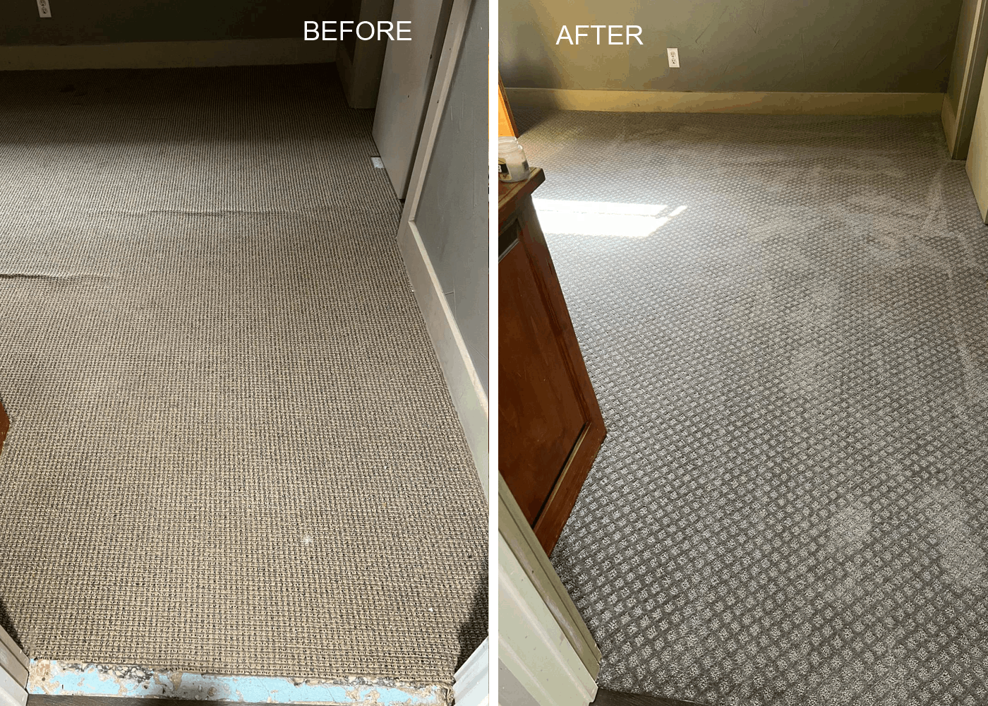 Carpet repair, re-stretching and patching .